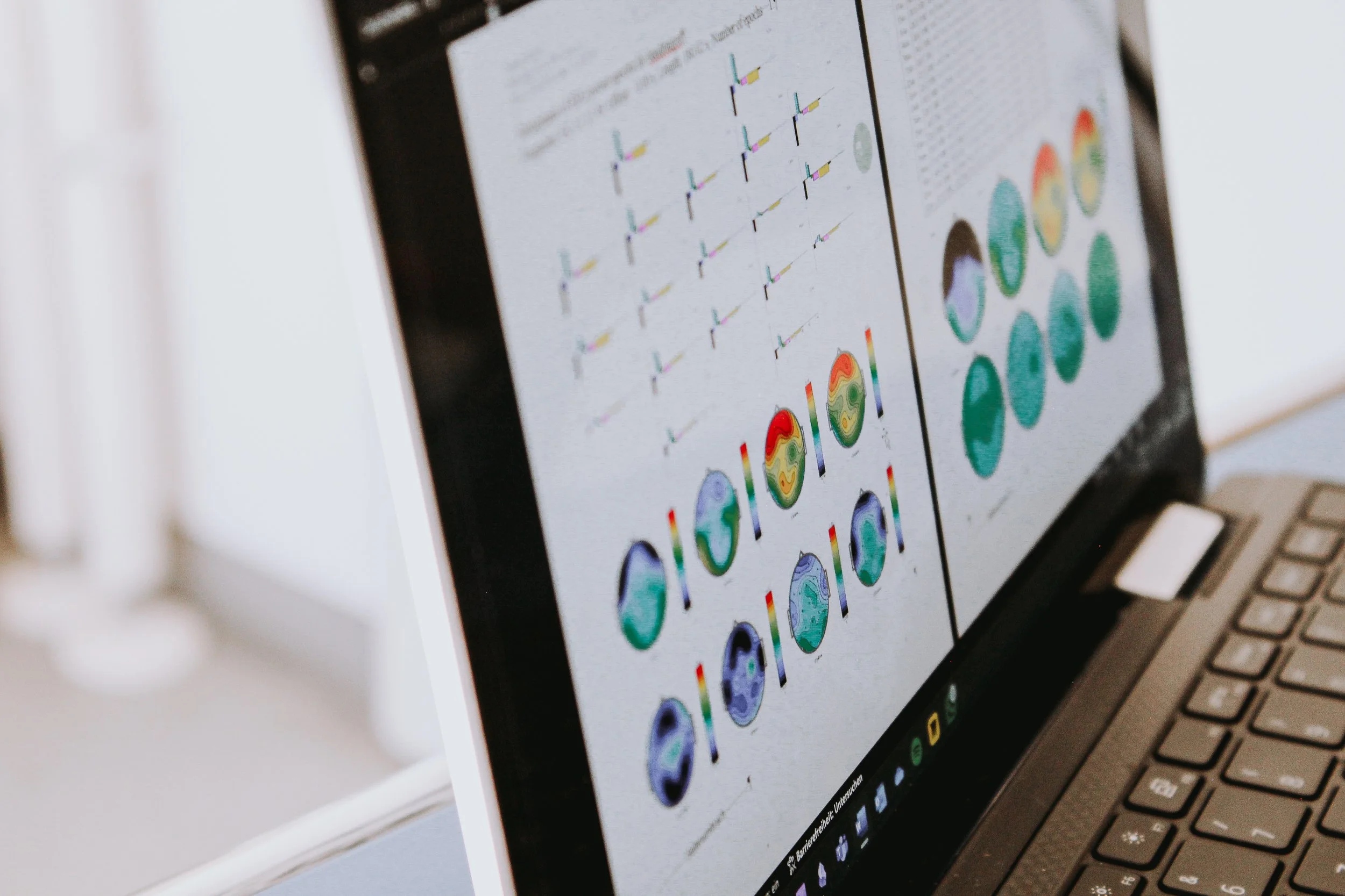 Im Neurofeedback wird deine Gehirnaktivierung mithilfe von sensiblen Elektroden am Kopf gemessen und mit einer spezialisierten Software in Echtzeit aufgezeichnet.